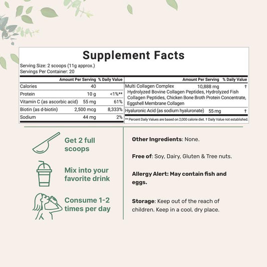 Aura Glo Collagen Bio-Peptides Powder 20oz - Grassfed Protein Supplement - Advanced with 18 Essential Amino Acids